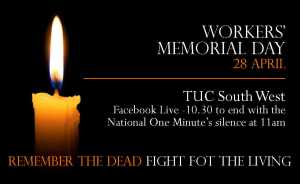 The South West TUC are holding a Facebook live meeting at 10:30 on the 28th where they are going to try and link Zoom speakers to a Facebook Live session. It will end with the minute’s silence at 11:00. Details can be found on the South West TUC Facebook page.