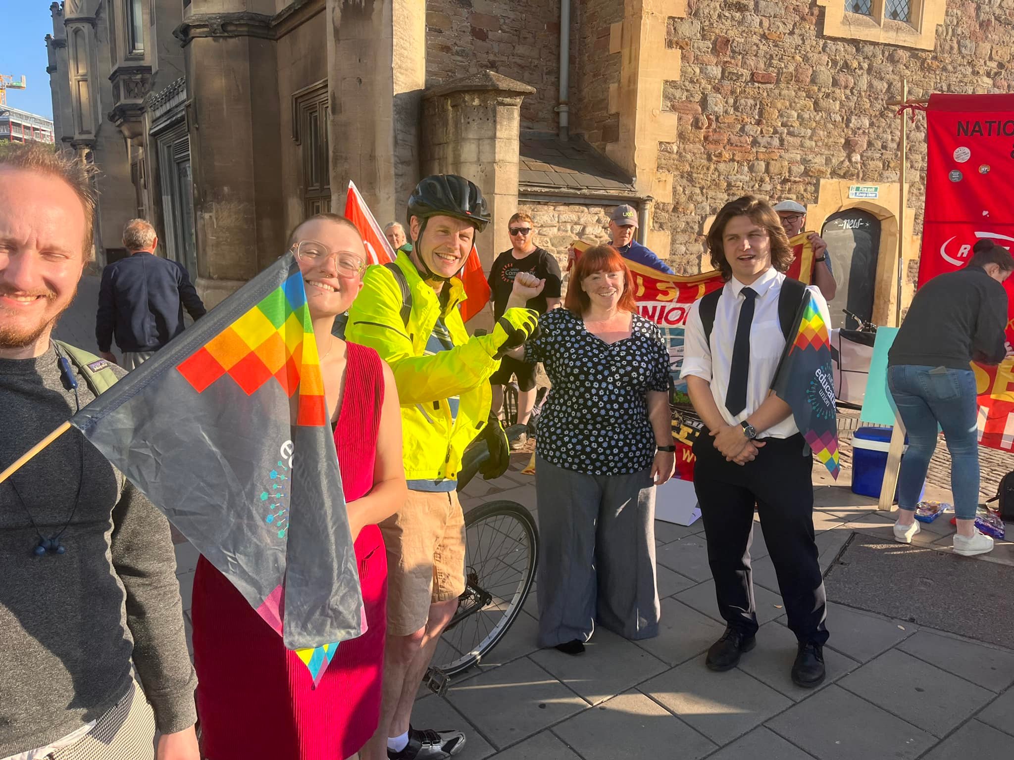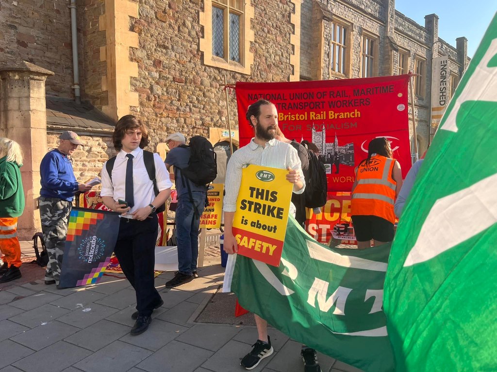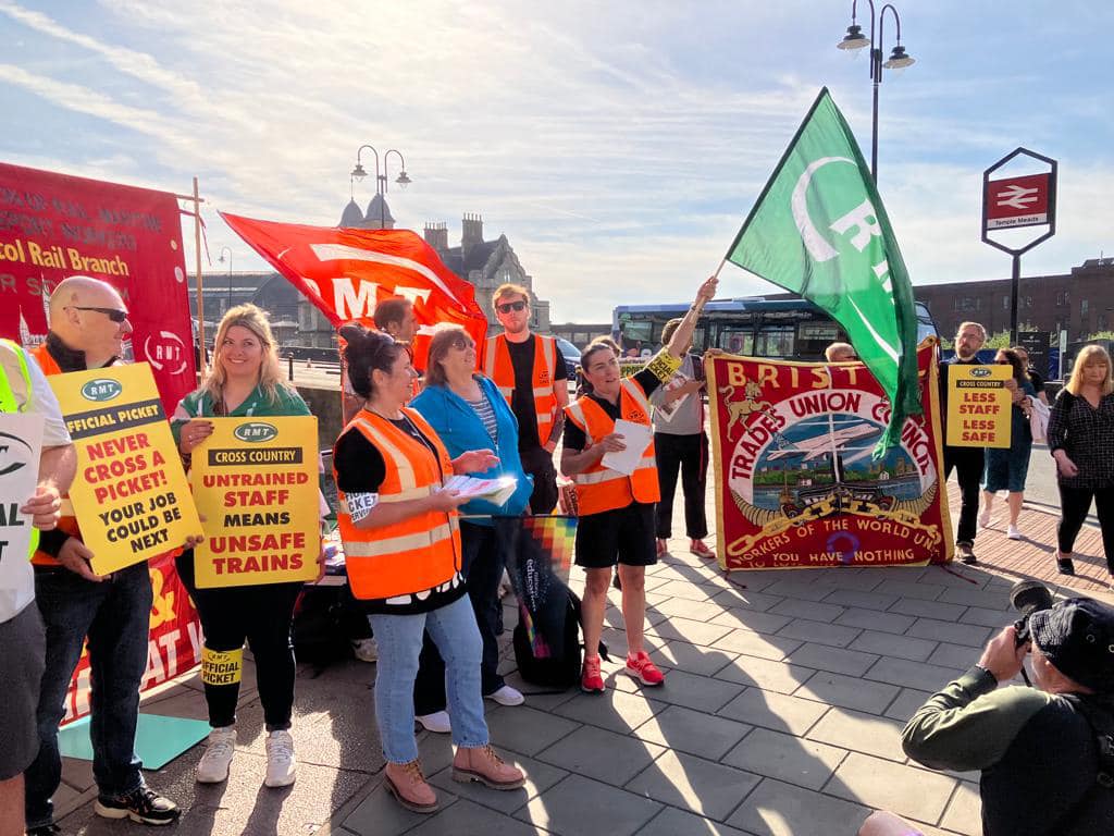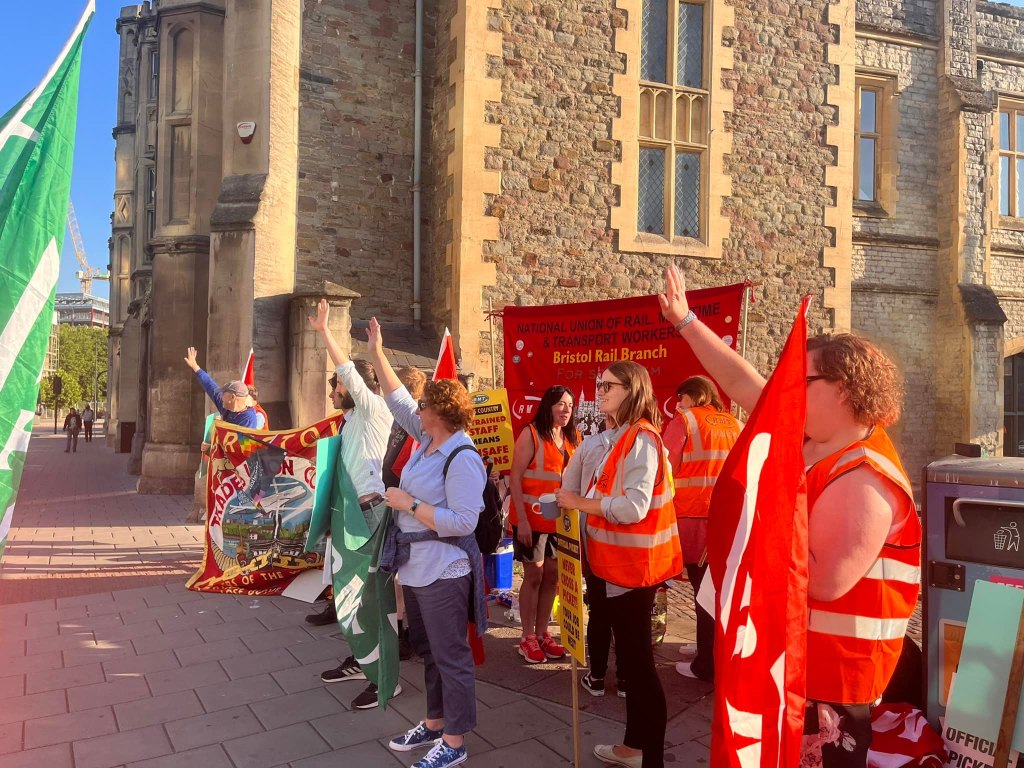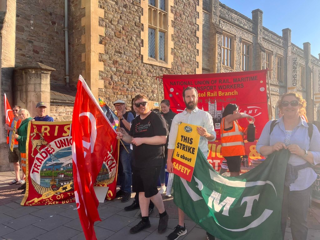 Solidarity with the RMT Posted byBristol TUCJuly 14, 2022September 16, 2022Posted indisputes Bristol Trades Council was pleased to be able to stand on the picket lines with determined fighters: determined to win on pay; determined to win on conditions and determined to win a decent, public rail service for all! Share this: Click to share on X (Opens in new window) X Click to share on Facebook (Opens in new window) Facebook Like Loading...