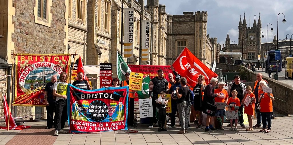 Bristol Trades Union Council delivered solidarity to Unison members from St Monica’s Trust, and RMT rail workers on strike this week.