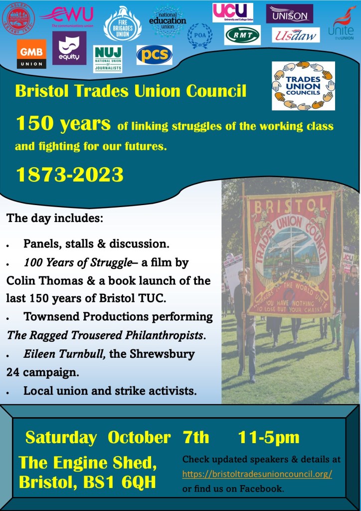150th Anniversary of BTUC Posted byBristol TUCSeptember 23, 2023April 19, 2025Posted inUncategorized Share this: Click to share on X (Opens in new window) X Click to share on Facebook (Opens in new window) Facebook Like Loading...