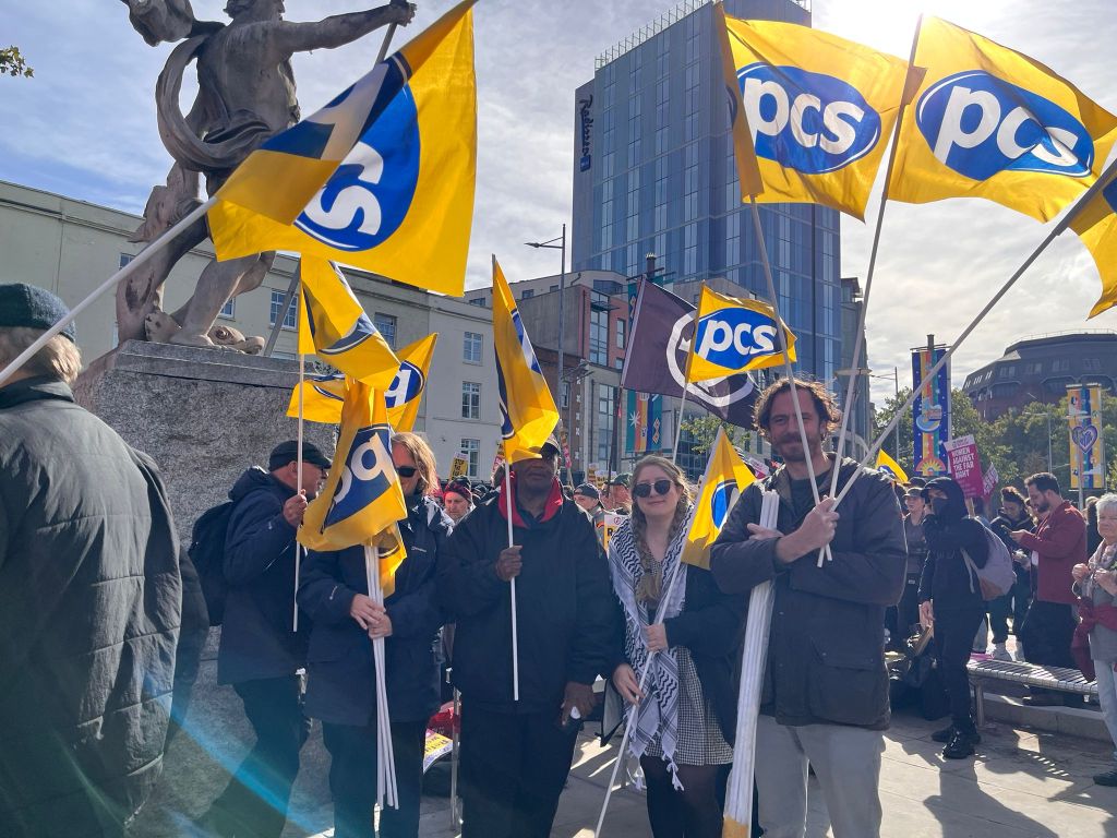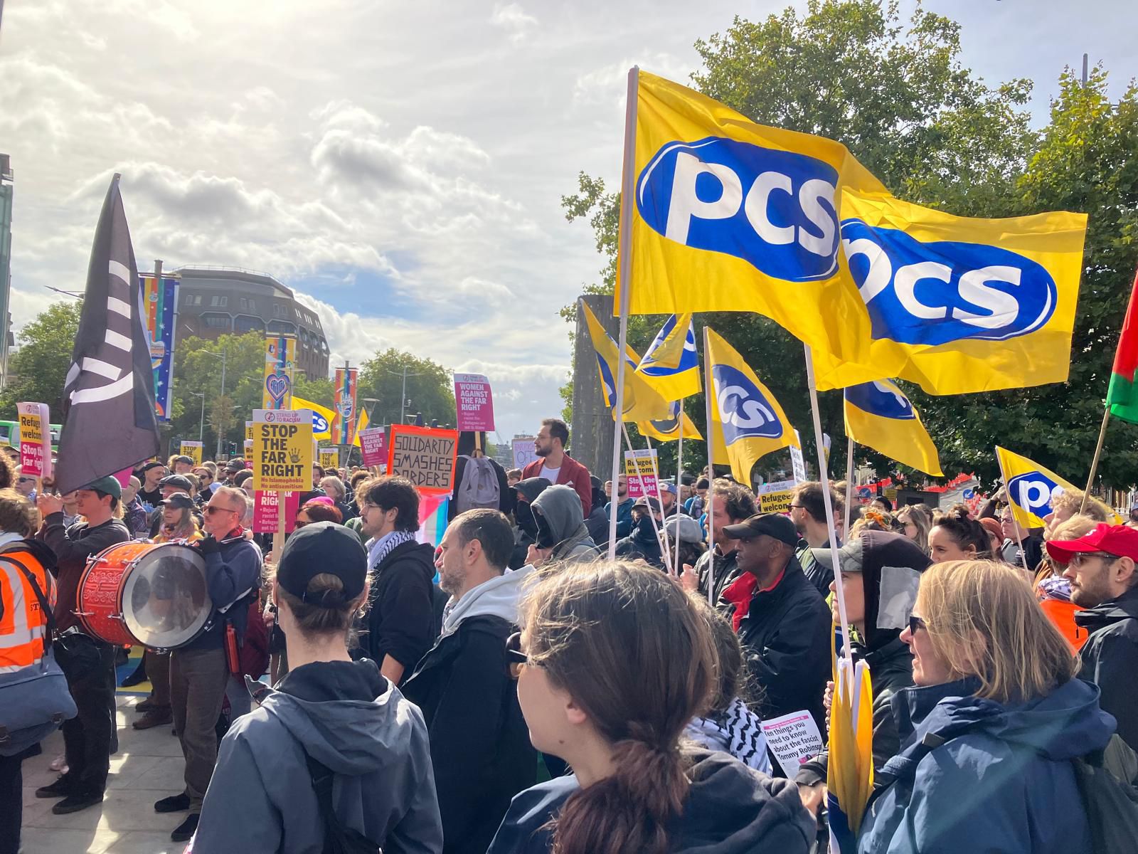 The Trades Council was joined by members of PCS, NEU, Unite, Unison, Equity, UCU and others to say that our struggle lays with a political class that lowers our living standards and supports wars abroad – not with immigrants, refugees and the most vulnerable in our society.